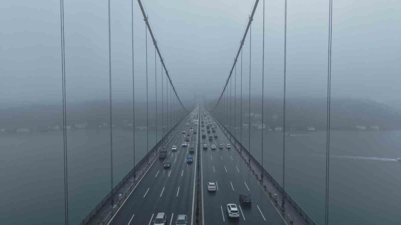 Sabah saatlerinden itibaren etkisini sürdüren sis, 15 Temmuz Şehitler Köprüsü'nde kartpostallık görüntüler oluşturdu. O anlar dron kamerasıyla havadan görüntülendi.