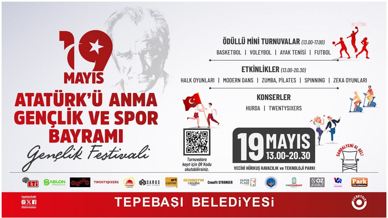Etkinlikler kapsamında ise ödüllü mini turnuvalar gerçekleştirilecek. Turnuvalar arasında ise basketbol, voleybol, ayak tenisi ve futbol yer alıyor. Turnuvalar ise 13.00-17.00 saatleri arasında düzenlenecek. Turnuvaya katılmak isteyen vatandaşlar görselde yer alan QR kodu okutarak veya 'https://tepebasi.bel.tr/festival/' linkine tıklayarak kayıt formuna ulaşabiliyor.