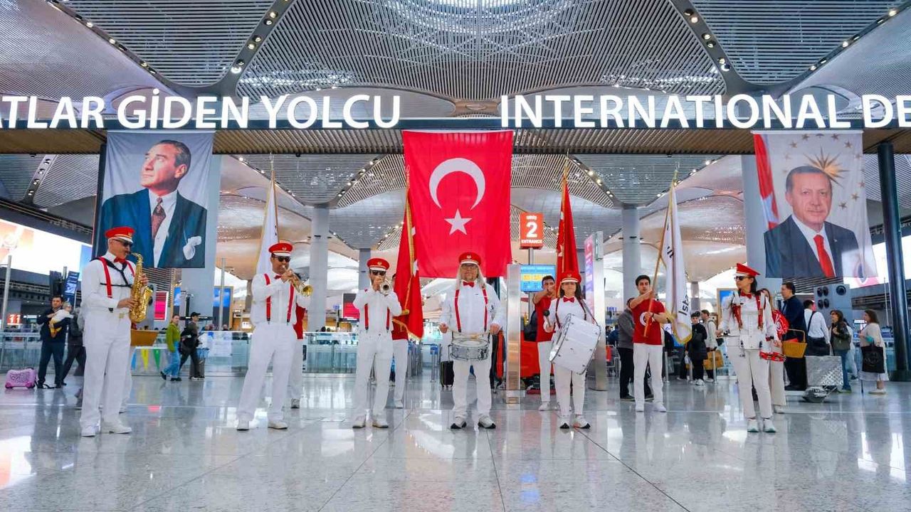 23 Nisan Ulusal Egemenlik ve Çocuk Bayramı, İstanbul Havalimanı'nda coşkuyla kutlandı. Havalimanı'nda bando gösterisi ve kortej yürüyüşü yapılırken vatandaşlara bayrak dağıtıldı.