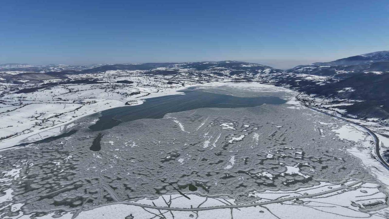 Hava sıcaklığının sıfırın altında 13 dereceye kadar düştüğü Ladik'te göl yüzeyinin büyük bölümünün donduğu gözlemlendi. Ortaya çıkan kış manzarası ilgi çekerken, kar yağışıyla birlikte gölü besleyen su kaynaklarının yeniden canlanması bekleniyor.