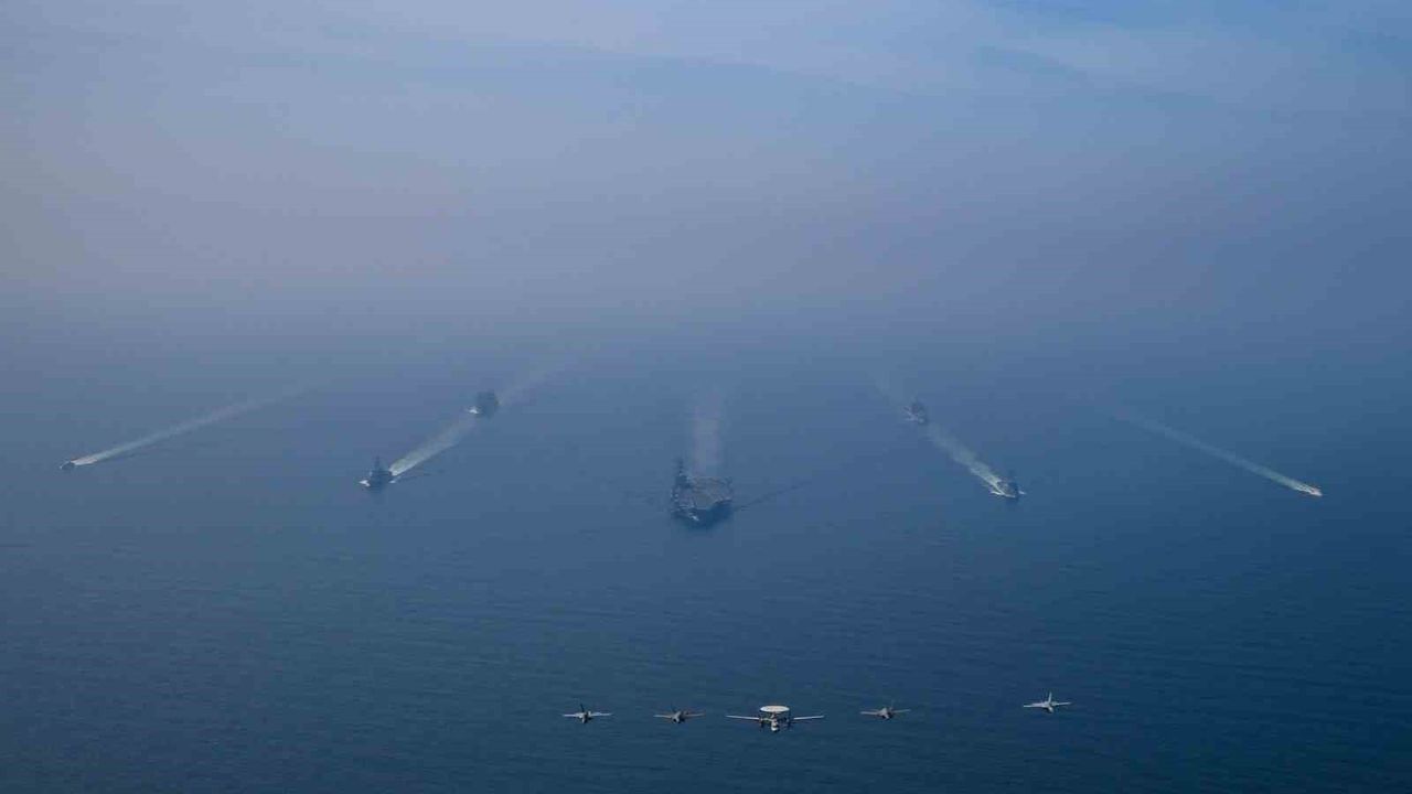 ABD Merkez Kuvvetler Komutanlığı'ndan (CENTCOM) yapılan açıklamada, 'Abraham Lincoln Uçak Gemisi Taarruz Grubu, 2 askeri ikmal gemisi ve 2 ABD Sahil Güvenlik gemisinin eşliğinde bugün Umman Denizi'nde seyir gerçekleştirdi' denildi.
