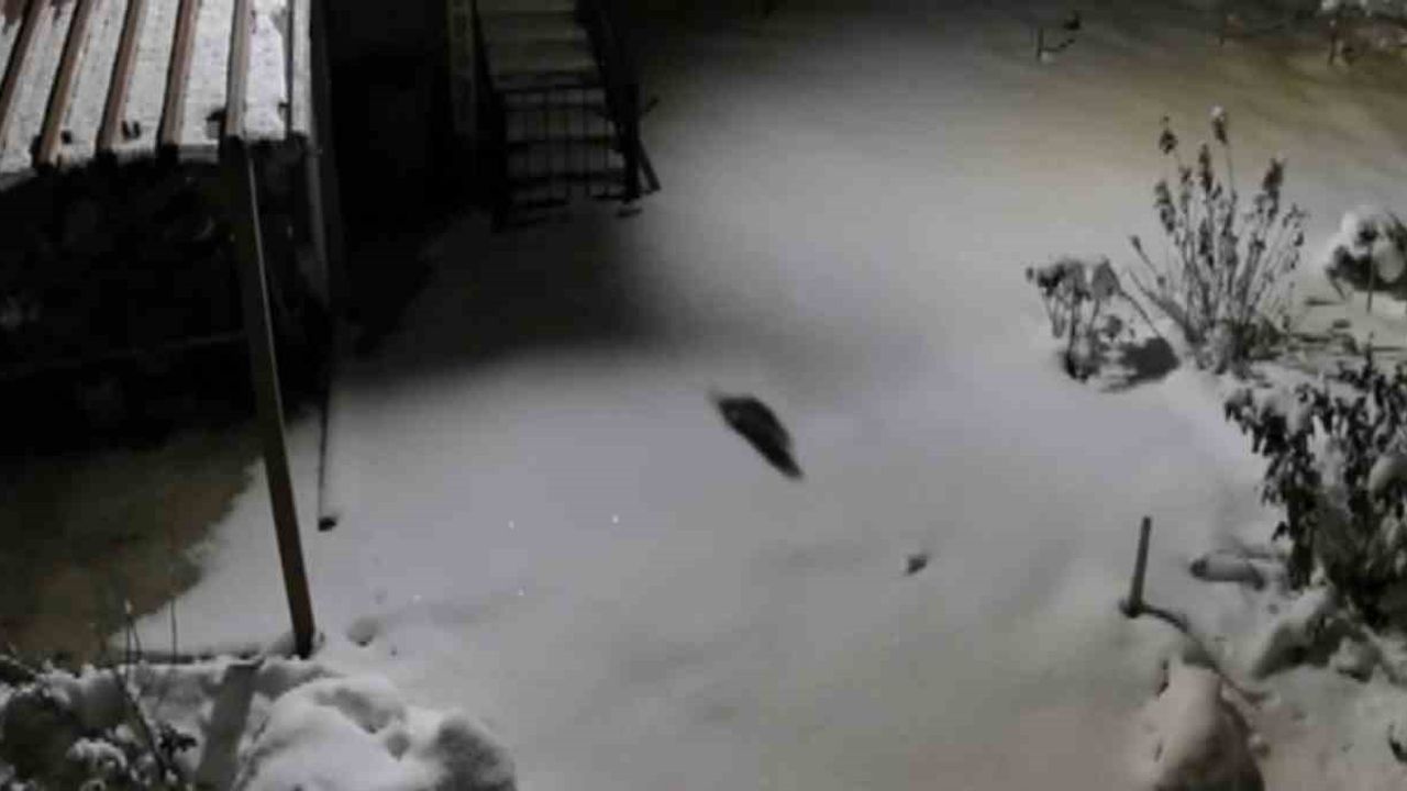 Güvenlik kamerasına saniye saniye yansıyan o anlarda sansarın kar üzerinde hızlı ve temkinli adımlarla ilerlediği, etrafı koklayarak yiyecek bir şeyler aradığı ve ardından gözden kaybolduğu görüldü.