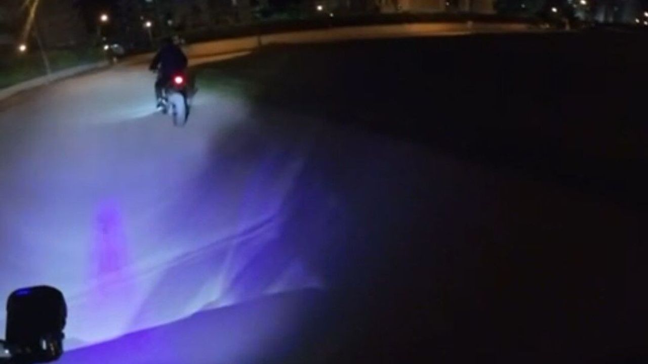 Öte yandan, motosiklet trafikten men edilerek otoparka çekildi. Ayrıca sürücü 'trafik güvenliğini tehlikeye sokmak' suçundan gözaltına alındı.