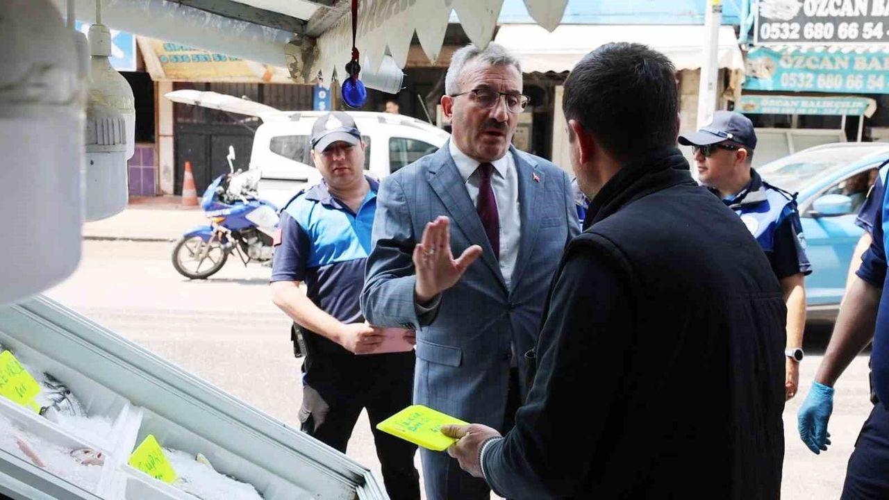 Zabıta ekipleri, Karaduvar'ın simgesi haline gelen balık tezgahlarında da denetim yaparak temizlik ve ürün muhafaza şartlarını kontrol etti.