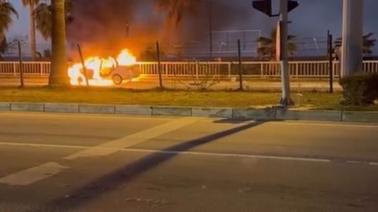 Antalya'nın Alanya ilçesinde meydana gelen trafik kazasında iki araç çarpıştı, kazanın ardından araçlardan biri alev alarak yandı.