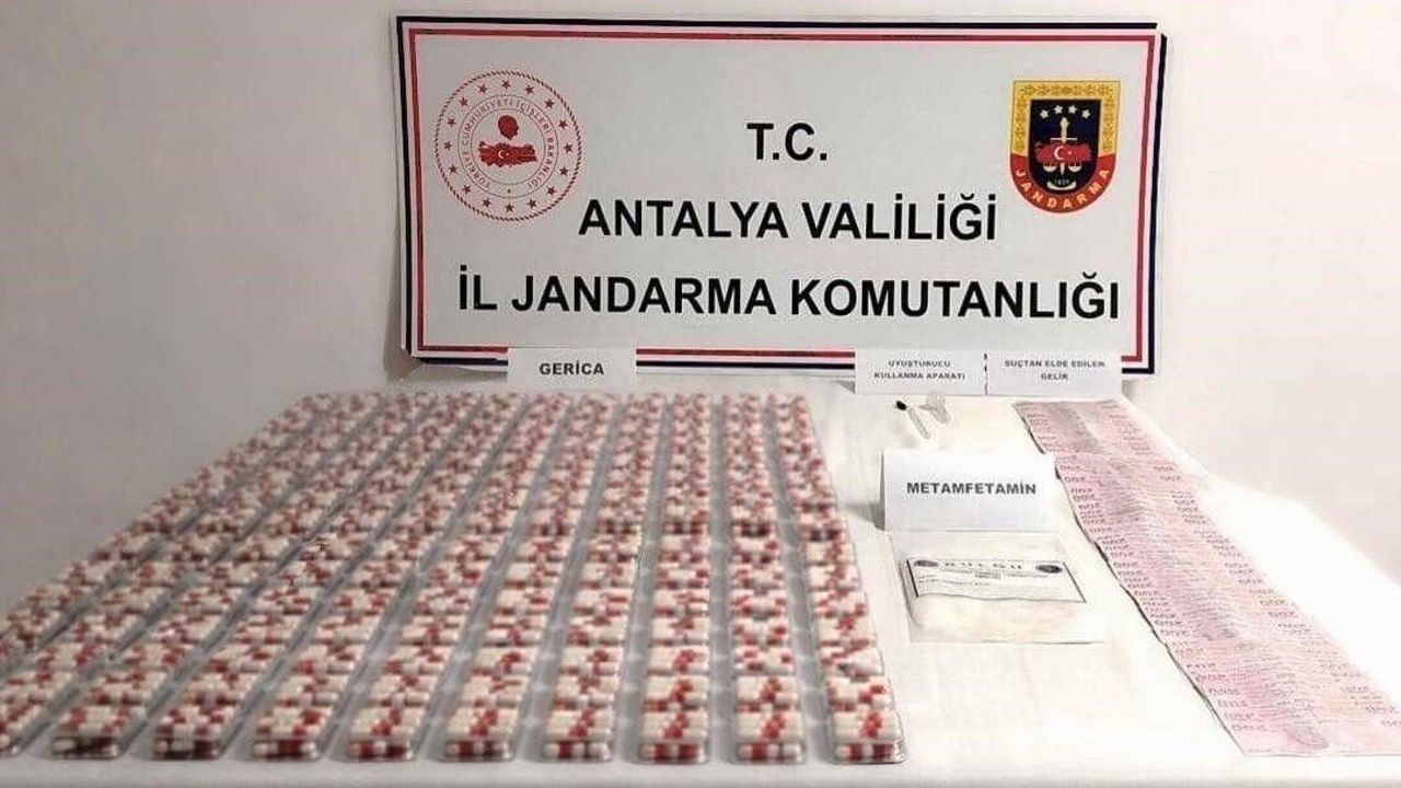 Antalya İl Jandarma Komutanlığı tarafından yürütülen çalışmalar kapsamında, Antalya Cumhuriyet Başsavcılığı talimatları doğrultusunda Konyaaltı ilçesinde uyuşturucuyla mücadeleye yönelik operasyon gerçekleştirildi. Operasyonda bir şüpheli şahsın aracında yapılan aramada, bin 770 adet sentetik hap (Gerica), 5 gram metamfetamin ile suçtan elde edildiği değerlendirilen 11 bin 750 TL ele geçirildi.