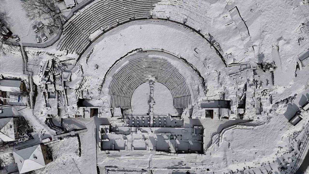 Antik kentin sütunları, tiyatro kalıntıları ve tarihi yapıları karla kaplanırken, beyaz örtü geçmişle bugünü bir araya getiren görsel bir şölen sundu. Doğal güzelliklerle bütünleşen tarihi doku, bölgeyi ziyaret edenler ve fotoğraf tutkunları için eşsiz görüntüler oluşturdu. Yetkililer, kar yağışı sonrası oluşan bu manzaranın antik kentin tarihi değerini bir kez daha gözler önüne serdiğini belirterek, Prusias Ad Hypium'un Düzce'nin kültürel zenginlikleri arasında önemli bir simge olmaya devam ettiğini ifade etti.