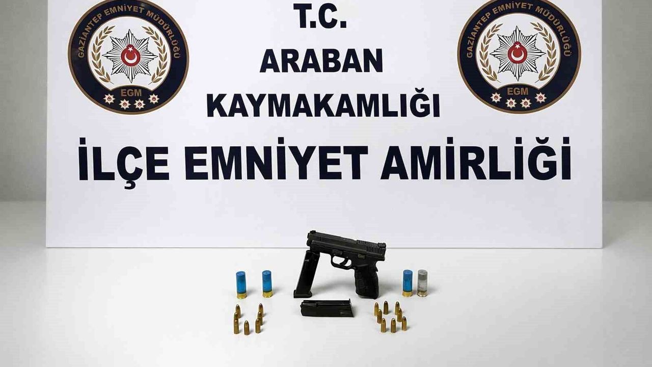 Araban İlçe Emniyet Amirliği ekipleri, ilçede belirli noktalarda yol kontrol faaliyeti icra etti. Ekiplerin ilçe merkezinde yaptığı yol kontrolünde durdurulan şüpheli bir araç arama yapıldı. Aramalarda, 1 adet ruhsatsız tabanca, 2 adet şarjör ve 15 adet mermi ele geçirildi.