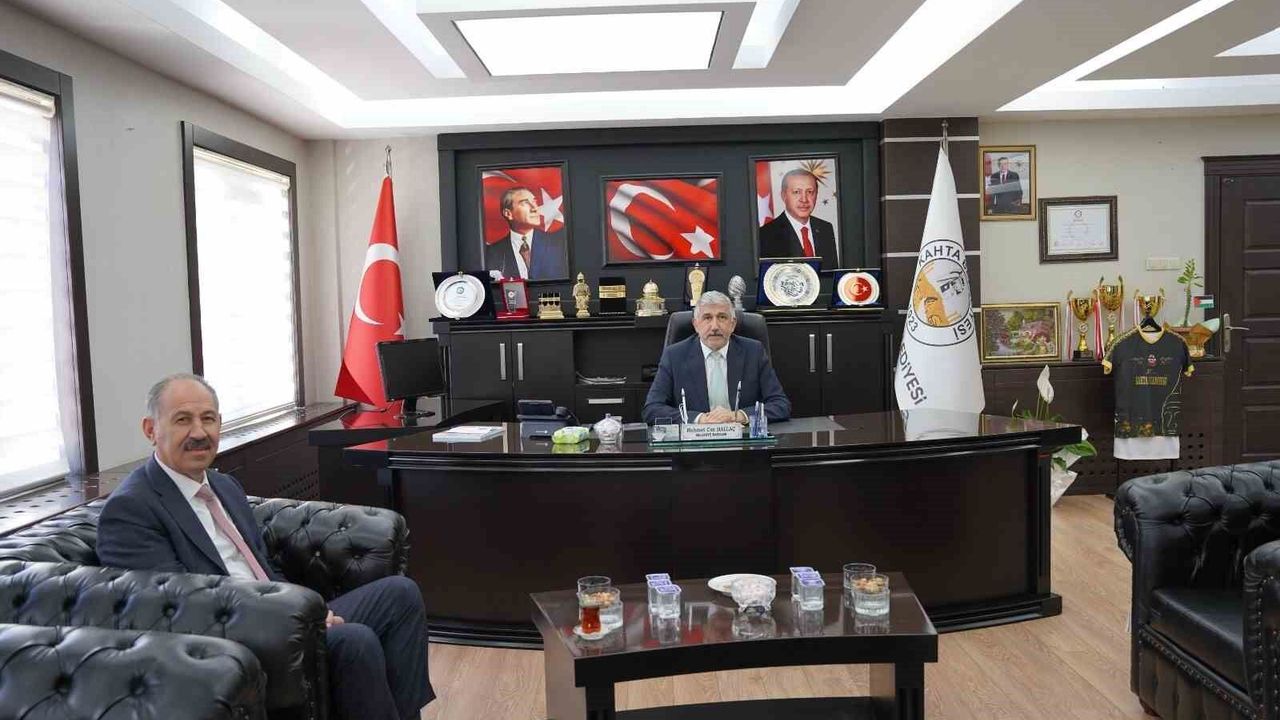Kars'ın Arpaçay İlçe Belediye Başkanı Zeki Elma, Kardeş Belediye kapsamında Kahta Belediye Başkanı Mehmet Can Hallaç'ı 'Halkın Makamı'nda ziyaret etti. Gerçekleşen ziyarette iki başkan, belediyecilik çalışmaları üzerine kapsamlı bir değerlendirme yaparak karşılıklı fikir alışverişinde bulundu.