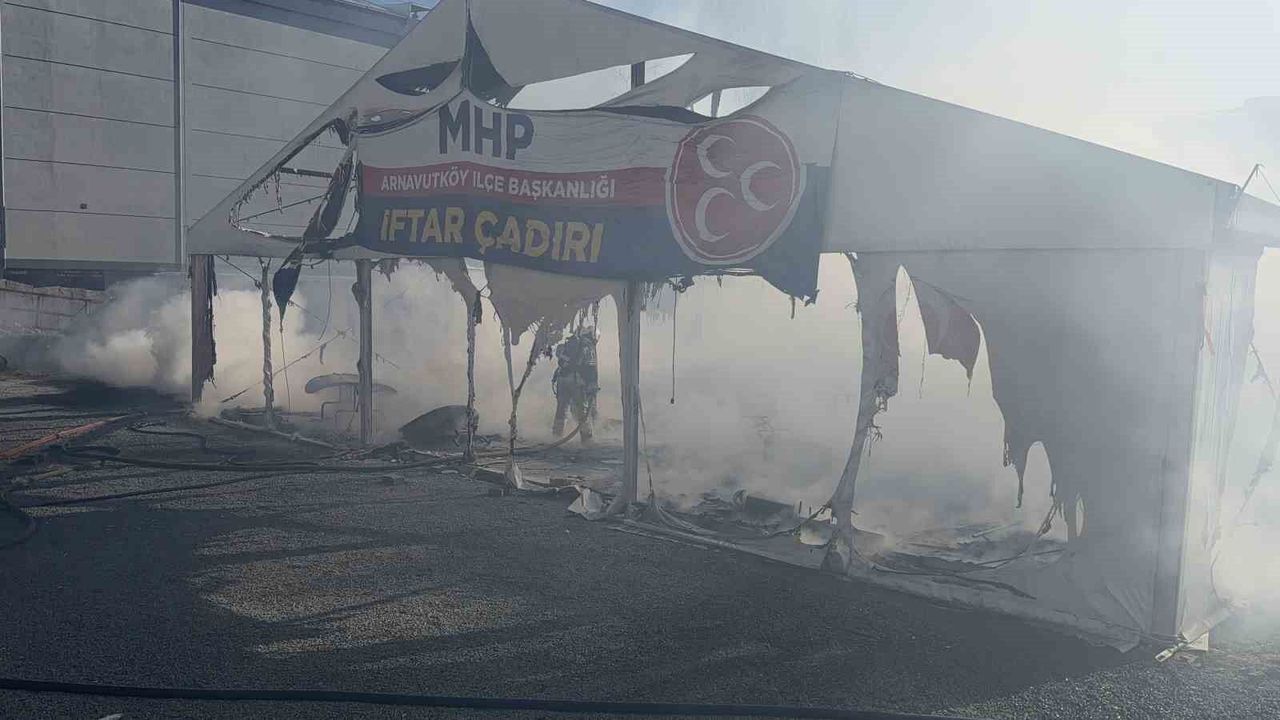 Olay, Arnavutköy Merkez'de bulunan Eski Edirne Asfaltı Caddesi üzerinde meydana geldi. Edinilen bilgilere göre, MHP'ye ait iftar çadırında henüz bilinmeyen bir nedenle yangın çıktı.