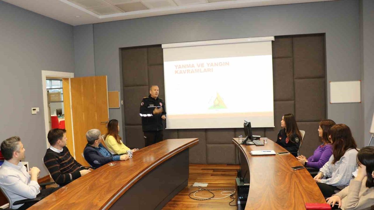 Aydın Ticaret Odası (AYTO) personeline muhtemel yangınlara karşı alınacak önlemler ve yangın anında yapılması gerekenler hakkında temel yangın eğitimi verildi.