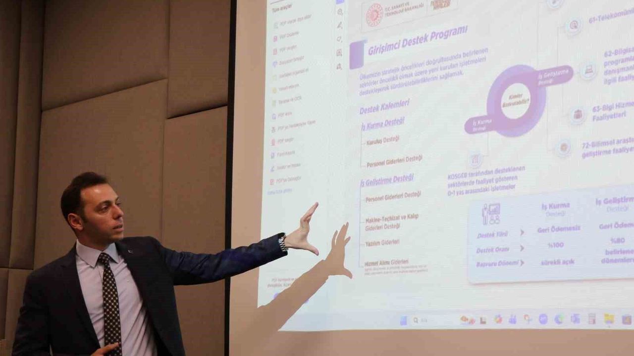 AYTO Akademi Eğitim Salonu'nda düzenlenen toplantıda, Küçük ve Orta Ölçekli İşletmeleri Geliştirme ve Destekleme İdaresi Başkanlığı Aydın İl Müdürü Berkay Çetin Oral tarafından başta İmalat Sanayi İçin Kredi Finansmanı ve İstihdamı Koruma Programı olmak üzere devletin sunduğu destekler hakkında kapsamlı bilgiler verildi. KOBİ'lerin üretim gücünü artırmaya yönelik desteklerin önemine dikkat çeken Oral, imalatçı ve büyüme hedefi olan işletmeler için sunulan fırsatları katılımcılarla paylaştı.Toplantıya AYTO Yönetim Kurulu Üyesi Belgin Çekmen Altay da katılırken, program katılımcıların sorularının yanıtlanmasıyla sona erdi.