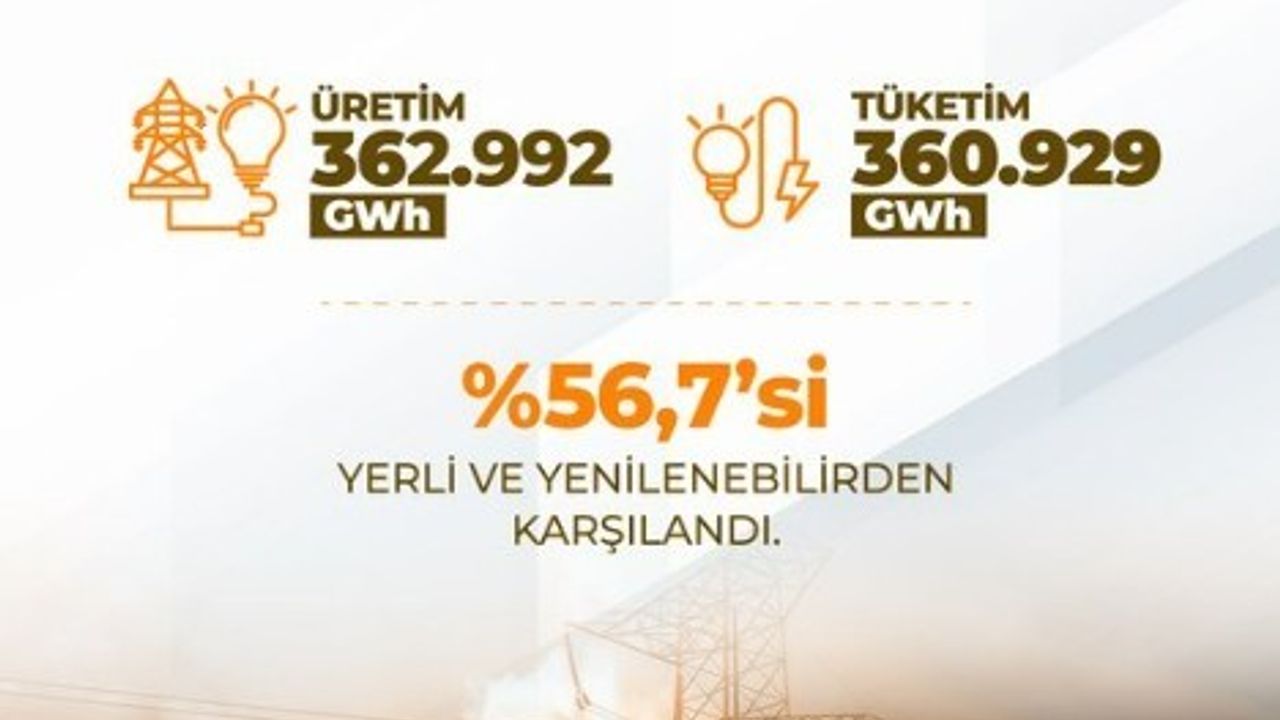 Türkiye'nin elektrik kurulu gücü, aralık ayı sonu itibarıyla 122 bin 519 megavata yükseldi. 2025 yılında toplam tüketim 360 bin 929 gigavatsaat ile tüm zamanların en yüksek seviyesine ulaşırken, yıllık bazda üretimde 362 bin 992 gigavatsaat ile rekor kırıldı. Yenilenebilir enerjinin kurulu güç içindeki payı da yükselişine devam etti. Toplam elektrik kurulu gücünün yüzde 62,3'üne karşılık gelen 76 bin 281 megavatlık kısmını yenilenebilir enerji oluşturdu. 2025 yılında toplam elektrik tüketimi 360 bin 929 gigavatsaat ile tüm zamanların en yüksek seviyesine çıkarken, bu tüketime 362 bin 992 gigavatsaatlik rekor üretimle karşılık verilmiş oldu.