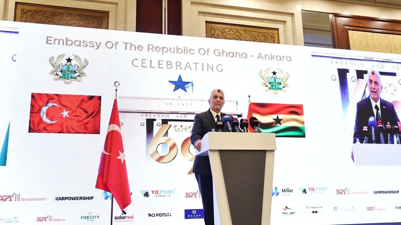 Ticaret Bakanı Ömer Bolat, Gana Cumhuriyeti'nin bağımsızlığını kazanmasının 69'uncu yılı vesilesiyle Gana Büyükelçiliği tarafından düzenlenen Gana Milli Günü İftar Programı'na katıldı. Programda konuşan Bakan Bolat, Cumhurbaşkanı Recep Tayyip Erdoğan'ın 31 Afrika ülkesine 50'den fazla ziyaret gerçekleştirdiğini belirterek, bu ziyaretlerin Türkiye'nin Afrika ülkelerine ve halklarına verdiği önemi ortaya koyduğunu ifade etti. Bolat, 'Türkiye Cumhurbaşkanımızın yönetiminde başlattığı Afrika'ya açılım stratejisi çerçevesinde kıtada bulunan 50'den fazla ülkeyle ilişkilerini karşılıklı saygı eşit ortaklık ve kazan-kazan anlayışı temelinde derinleştirmiştir, ilerletmiştir. Bu stratejik vizyonun gereği olarak ülkemiz bir yandan Afrika'daki olumsuz ekonomik şartların iyileştirilmesi için katkılar sağlarken diğer yandan kıta ülkeleriyle siyasi ekonomik kültürel yatırım iş birliğini de çok büyük ölçüde geliştirilmiştir' ifadelerine yer verdi.