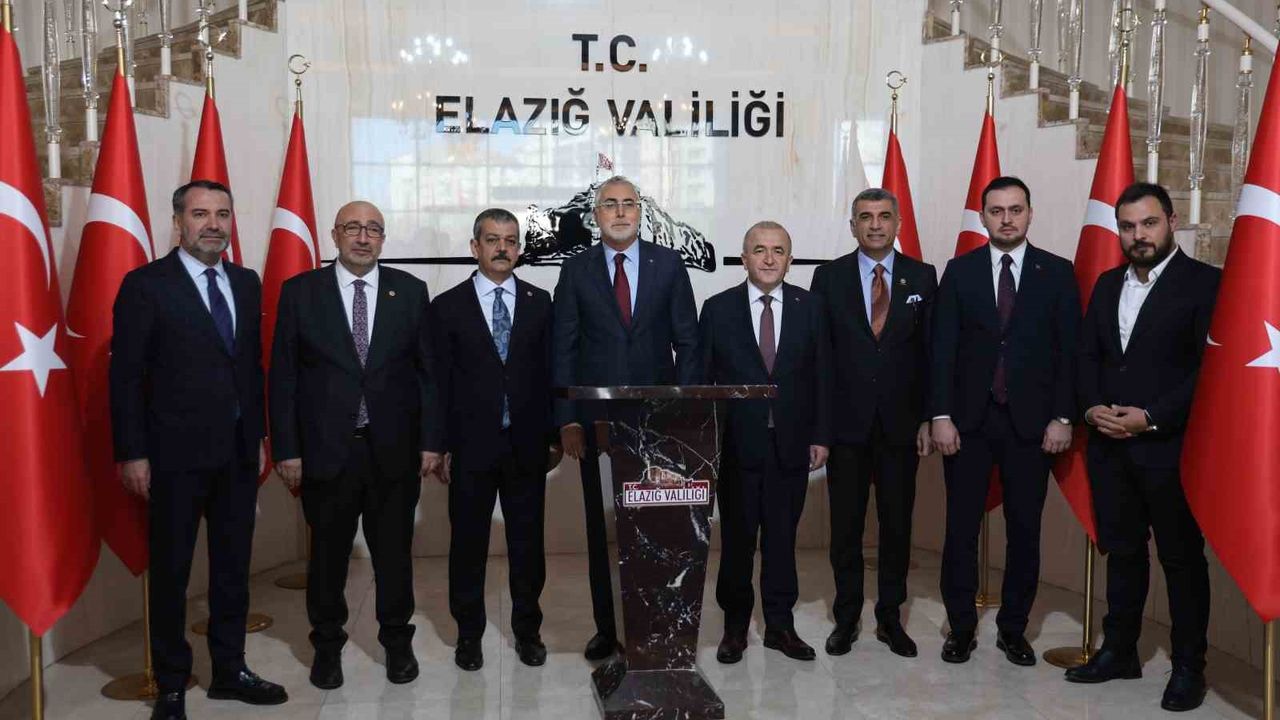 Çalışma ve Sosyal Güvenlik Bakanı Vedat Işıkhan'a AK Parti Elazığ milletvekilleri Prof. Dr. Erol Keleş ve Ejder Açıkkapı, CHP Elazığ Milletvekili Gürsel Erol, Belediye Başkanı Şahin Şerifoğulları, AK Parti Elazığ İl Başkanı İbrahim Sencer Selmanoğlu eşlik etti.