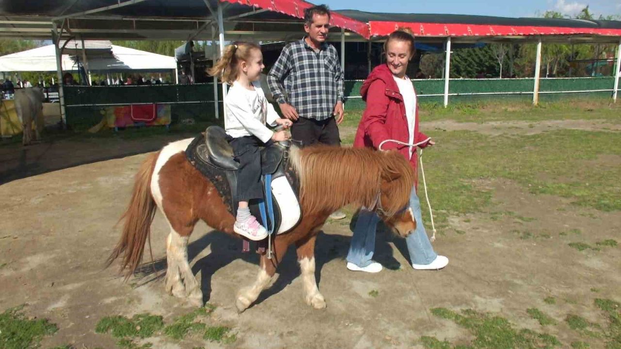 Burhaniye ilçesinde, velileriyle birlikte Ören Meço Tatil Sitesi yanında bulunan Mila Garden işletmesine gelen çocuklar, at binerken mutluluk yaşadı. Midilli Pony atlarına binen çocuklar at binmeyi herkese tavsiye ettiklerini söyledi,