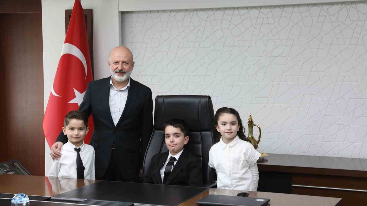 Mehmet Tarman Ortaokulu 6. sınıf öğrencisi Eymen Karakaş, Hacı Ömer Ayten Tepecik İlkokulu 2. sınıf öğrencisi Mina Karakaş ile anasınıfı öğrencisi Göktuğ Şimşek'i misafir eden Başkan Çolakbayrakdar, onlarla tek tek ilgilendi. Öğrencilerle sohbet eden Başkan Çolakbayrakdar, makam koltuğunu Eymen Karakaş'a teslim etti. Başkanlık makamına oturan öğrenci Eymen Karakaş, Park ve Bahçeler Müdürlüğünü arayarak ilçeye yeni bir park yapılması talimatını verdi. Eymen Karakaş, mevcut 722 parkın sayısının 723'e çıkarılmasını isteyerek çevreye ve oyun alanlarına verdiği önemi ortaya koydu. Programın bir diğer minik konuğu olan anasınıfı öğrencisi Göktuğ Şimşek ise okuduğu İstiklal Marşı ile gururlandırdı.