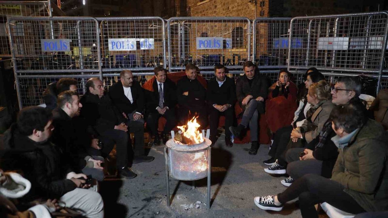 Gecenin ilerleyen saatlerinde havanın soğumasıyla birlikte barikat önünde ateş yakıldı. Bağlamalarıyla gelen vatandaşlar, hep bir ağızdan türküler söyledi. Başkan Tugay da türkülere eşlik etti. Gece boyunca ayrıca şiirler okundu, çorbalar içildi.