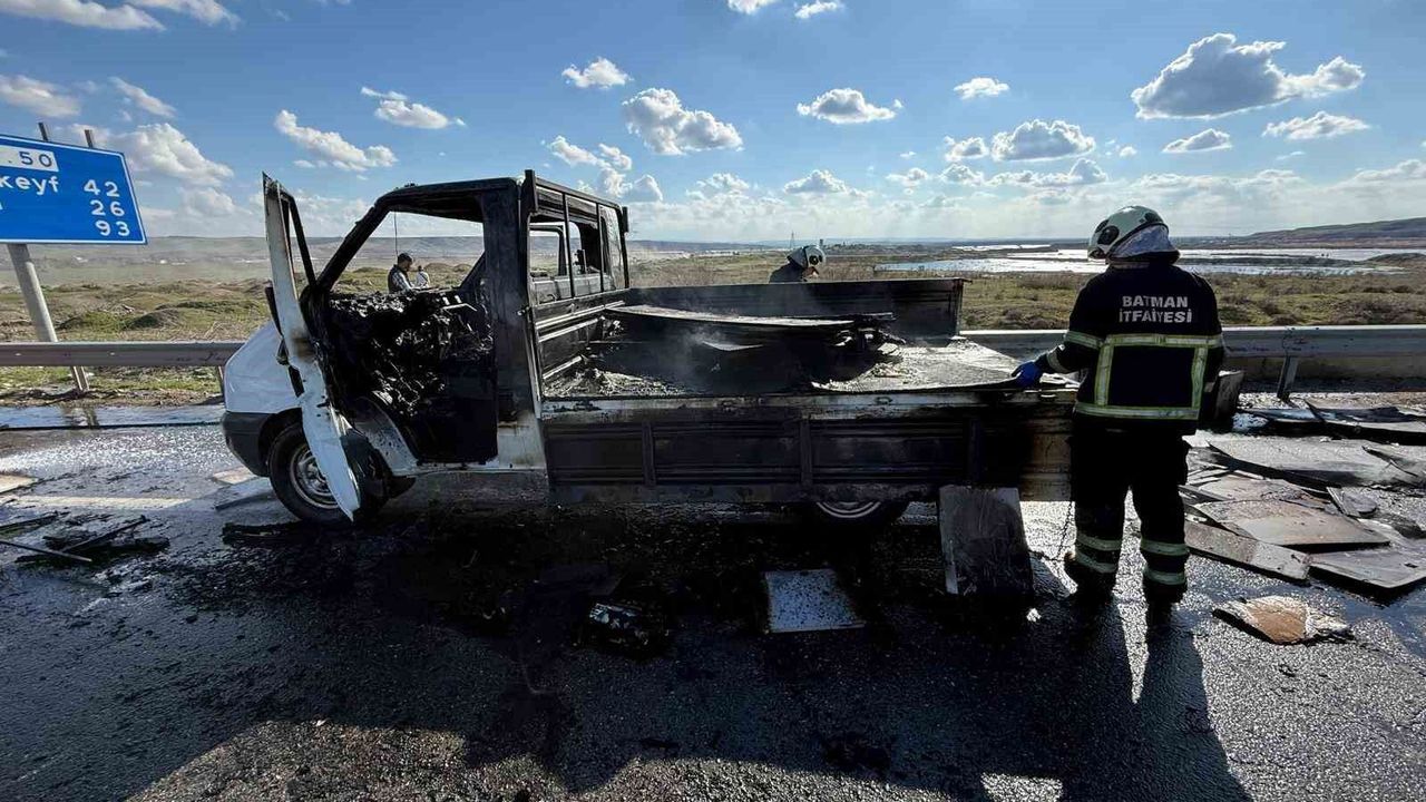 Batman'da seyir halindeki kamyonet alev alarak kullanılamaz hale geldi.