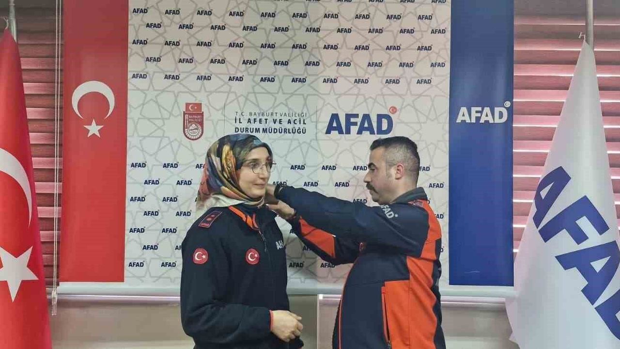 Bayburt AFAD İl Müdürlüğünde görevli arama ve kurtarma teknisyenlerinden amir kadrosuna yükselen personele rütbeleri takıldı.