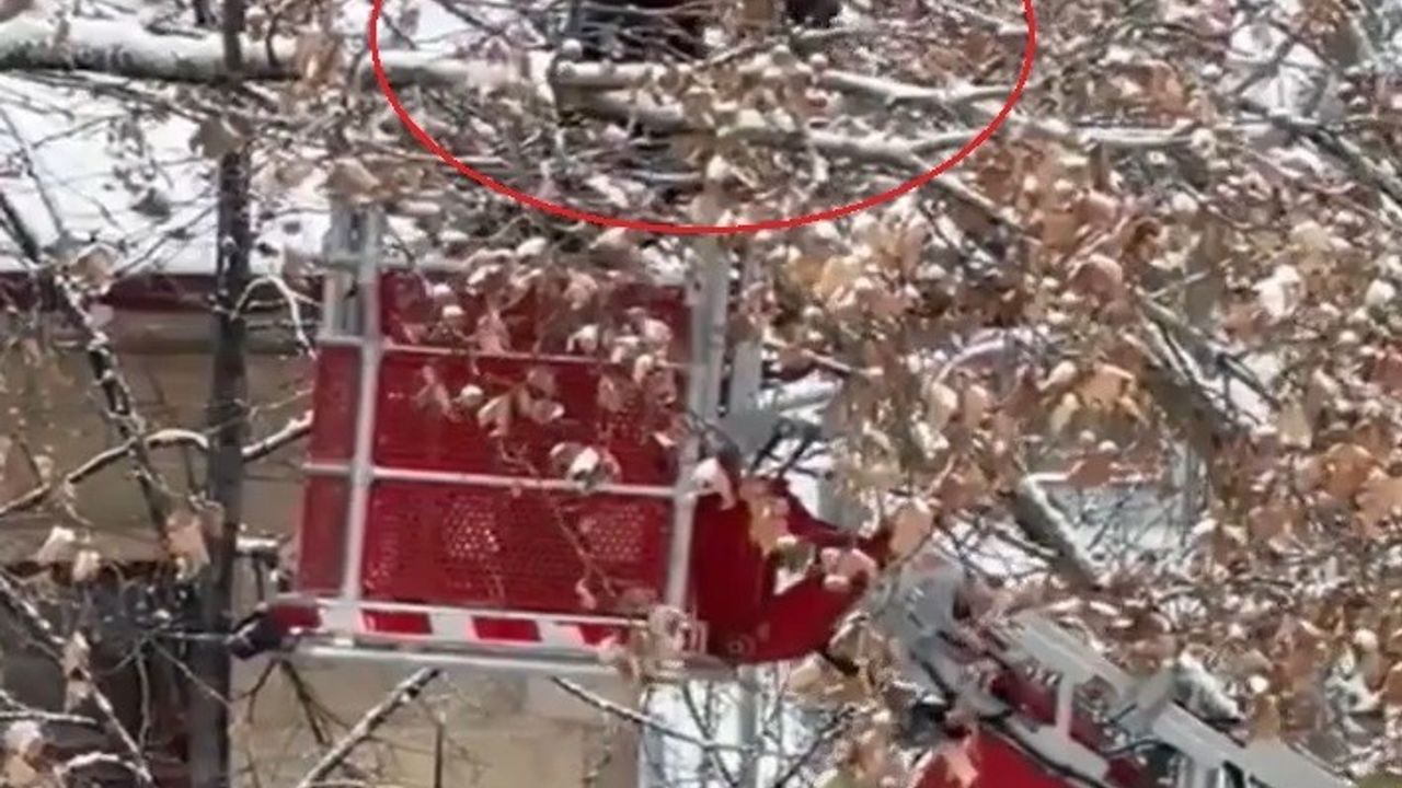 İhbar üzerine olay yerine gelen ekipler, itfaiye aracıyla ağaca çıkarak karganın yanına ulaştı. Ekipler, titiz bir çalışma yürüterek karganın kanatlarını takıldığı dallardan çıkardı.