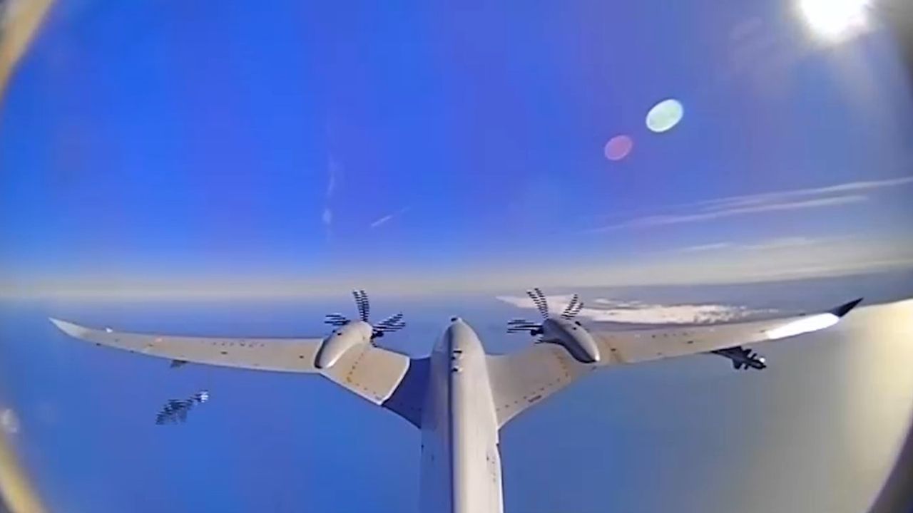 Bayraktar AKINCI TİHA, EREN Yüksek Hızlı Çok Amaçlı Dolanan Mühimmat ile gerçekleştirdiği hava-hava atış testinde gökyüzündeki hedef İHA'yı tam isabetle imha etti.