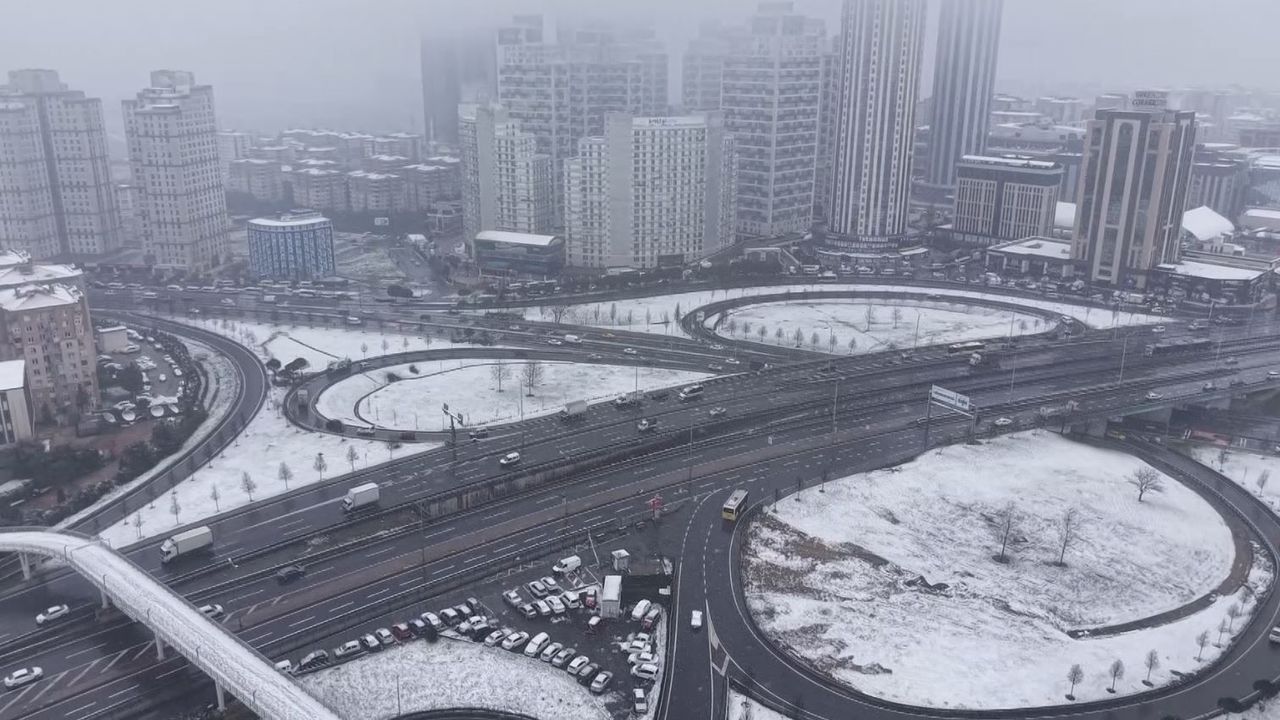 İstanbul'da aralıkla süren kar yağışı özellikle yüksek kesimlerde tuttu. Bazı ilçelerde kar kalınlığı artarken, Esenyurt ise kısmen beyaza büründü. Yağışın sürdüğü Esenyurt dronla görüntülendi.
