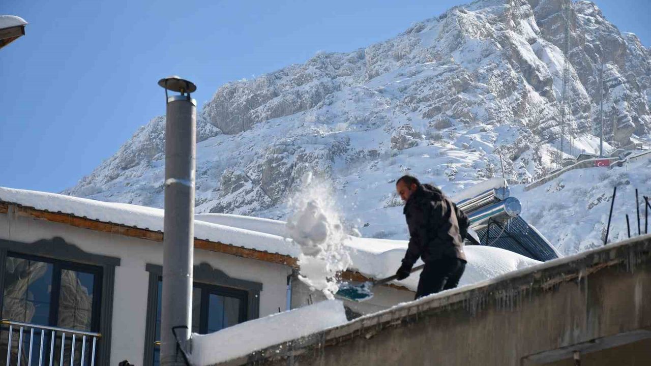 Beytüşşebap ilçesinde damlarda biriken kar yığınları temizleniyor. Kar kalınlığının 2 metreye ulaştığı ilçede sürekli damlarda ağırlık yapmasın diye herkes evinin damına çıkarak temizliyor. Recai Metin, günlerdir kar temizlediğini belirterek, bu yılın bereketli geçeceğine inandığını söyledi. Metin, 'Yıllardır bu kadar kar yağmamıştı. Çok şükür bölgemize çok kar yağdı, herkes damlarını temizliyor. Biz de bugün temizledik. İnşallah daha çok kar yağacak' dedi.