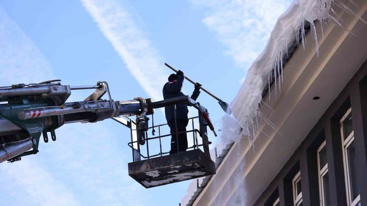 Bingöl'de tehlike oluşturan buz sarkıtları, itfaiye ekipleri tarafından temizlendi.