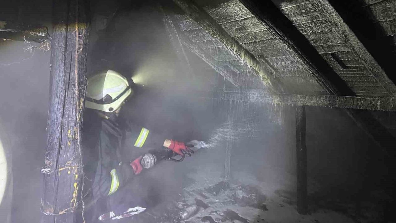 Bolu'nun Dörtdivan ilçesinde soba bacasından çıktığı belirlenen yangında 2 katlı evin çatı katı alevlere teslim oldu.