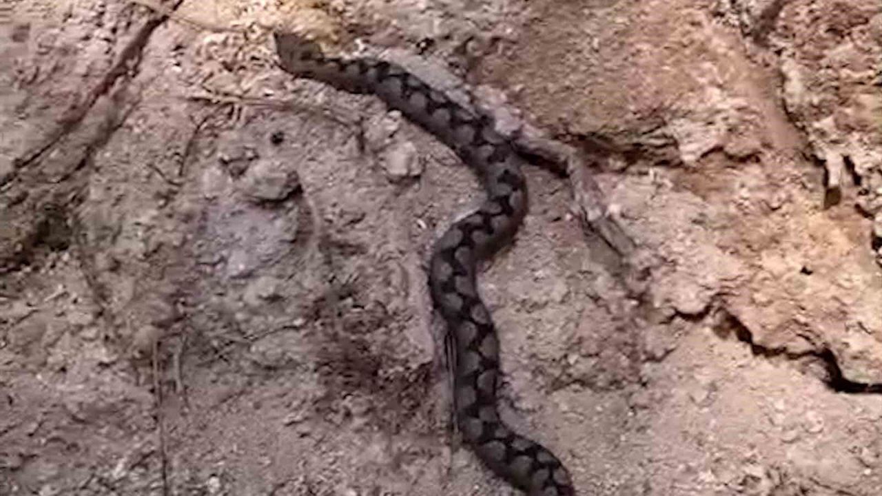 Bolu'da ormanlık alanda çalışan işçiler, odun yığınları arasında nesli tükenme tehlikesi altında olan zehirli Kafkas burunlu engerek yılanını cep telefonuyla görüntüledi.