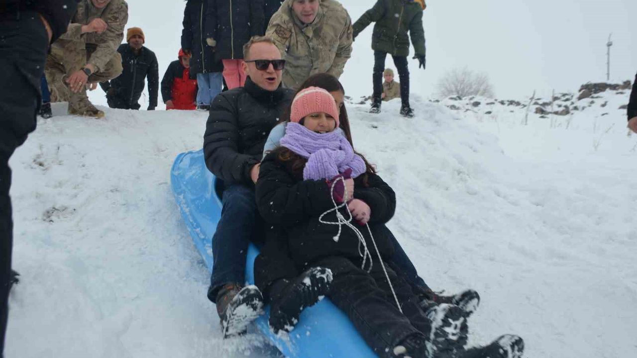 Muş'un Bulanık Kaymakamlığı, sosyal sorumluluk ve çocuk odaklı projelerine bir yenisini daha ekleyerek ilçede örnek bir etkinliğe imza attı. Bulanık İlçe Jandarma Komutanlığı bünyesinde oluşturulan özel alanda düzenlenen kış etkinliğinde çocuklar, jandarma personeliyle birlikte kızak kayarak doyasıya eğlendi. Soğuk kış günleri, çocukların neşesiyle adeta şenlik havasına büründü. Bulanık İlçe kaymakamı Ömer Övünç Koşansu ve askerler çocukları kucaklarına alarak karda kızak keyfi yaşattılar çocuklara.