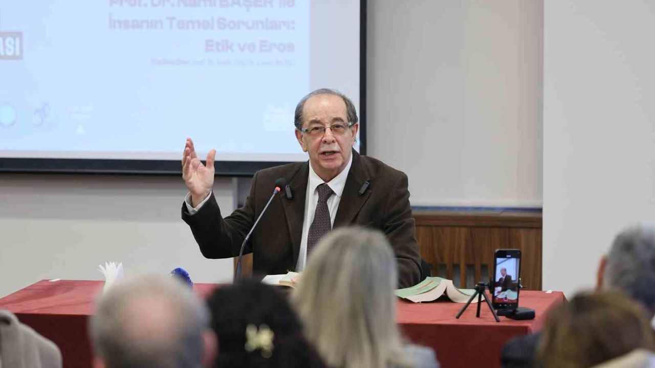 Kültür, Sanat ve Sosyal İşler Dairesi Başkanlığı tarafından Tayyare Kültür Merkezi'nde gerçekleştirilen programa, felsefe meraklıları yoğun ilgi gösterdi. İnsan ve Felsefe' temalı söyleşinin yürütücülüğünü Prof. Dr. Kadir Çüçen ve Ceren İplikçi üstlendi. Programa konuşmacı olarak katılan Prof. Dr. Nami Başer, 'İnsanın Temel Sorunları: Etik ve Eros' başlığında varlığın temel taşlarını felsefi bir bakış açısıyla ele aldı. Etkinliğin sonunda Kültür, Sanat ve Sosyal İşler Dairesi Başkanı Şafak Baba Pala tarafından Prof. Dr. Nami Başer'e hediye verildi.
