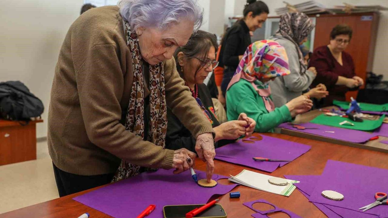 Bursa Kent Konseyi Kadın Meclisi'nde gerçekleştirilen atölye çalışmasında, keçe kumaşlar, renkli iplikler, düğmeler ve süsleme malzemeleri kullanılarak birbirinden renkli ürünler hazırlandı. Kadınların dayanışma ve ortak üretim gücünü bir kez daha ortaya koyan ürünler, 8 Mart Pazar günü yapılacak yürüyüşte kullanılacak.