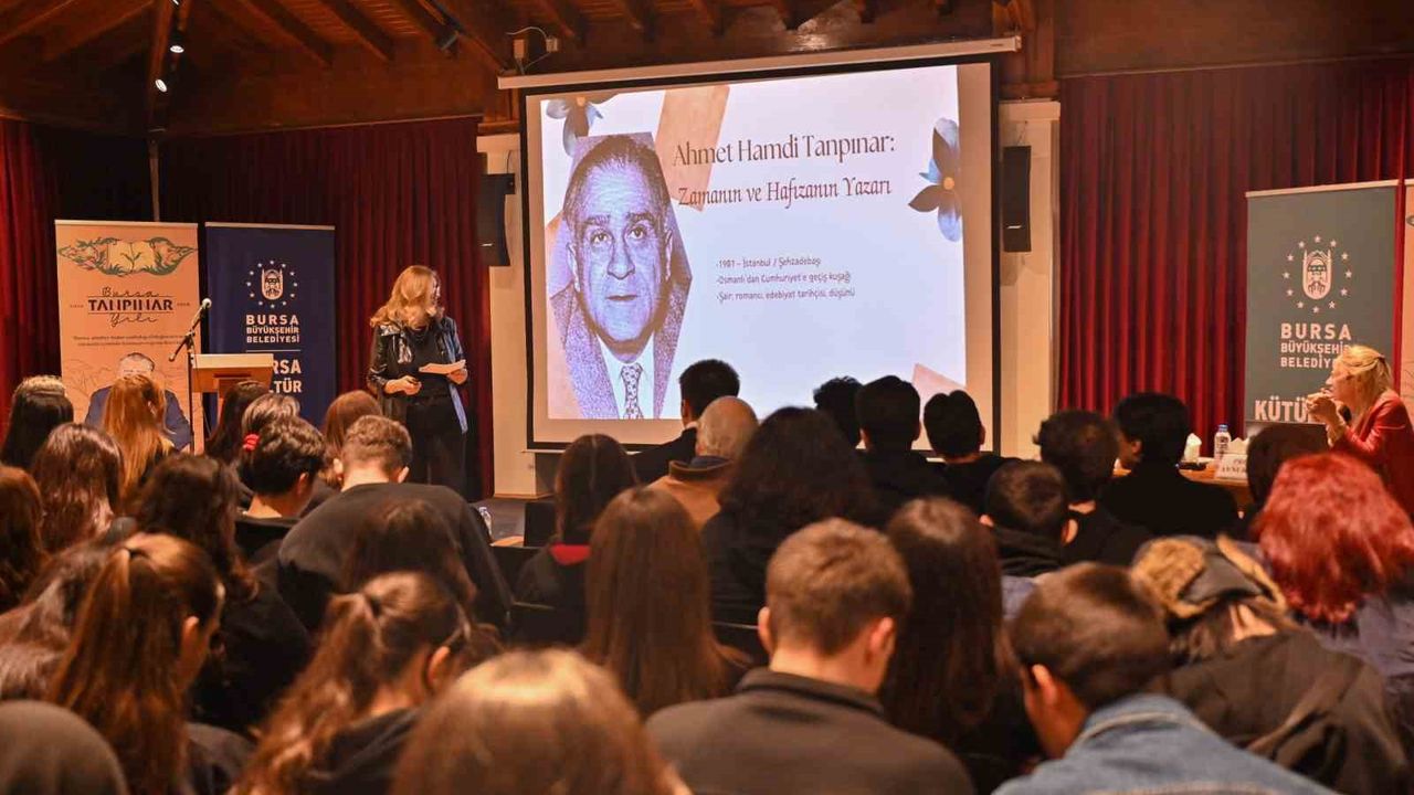 Bursa Büyükşehir Belediyesi'nin 'Bursa Tanpınar Yılı' etkinlikleri çerçevesinde düzenlediği söyleşide, Ahmet Hamdi Tanpınar'ın edebî dünyası mitler üzerinden yeniden okundu.