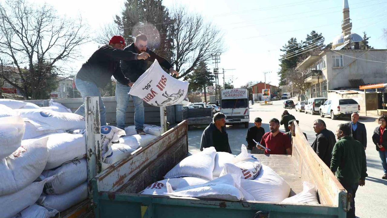 2025 yılında toplamda 500 tonu aşan hayvancılara yönelik yem destekleri yüz güldürdü. Bu kapsamda yıl içerisinde 97 bin 850 kg saman balyası, 36 bin 525 kg yonca, 7 bin 650 kg arpa, 337 bin 300 kg (6 bin 746 çuval) yüzde 15 hibe destekli süt yemi ve afet bölgelerine 486 çuval süt yemi desteği sağlandı.