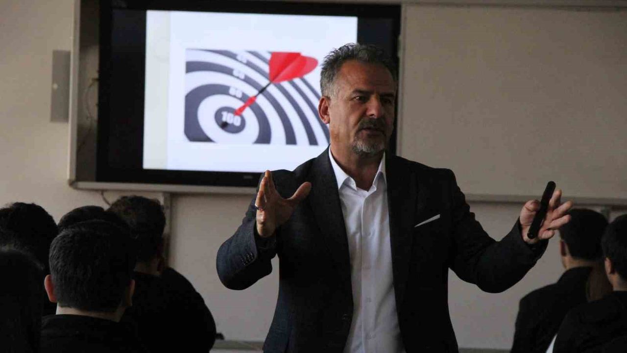 Programa katılan İlçe Millî Eğitim Müdürü Şahan İke ise 'Kararlılık ve Hedefler' başlıklı oturumda öğrencilerle bir araya geldi. On ikinci sınıf öğrencileri açısından planlamanın önemine değinen İke, başarının yalnızca akademik performansla sınırlı olmadığını, zihinsel dayanıklılık, duygusal denge ve çalışma disipliniyle doğrudan ilişkili olduğunu belirtti. Hayatın bireyin tercihleri doğrultusunda şekillendiğini ifade eden İke, karşılaşılan zorlukların öğrenme ve olgunlaşma sürecinin doğal bir parçası olduğunu söyledi. Hedeflere ulaşmada kararlılık, disiplin ve sürekliliğin belirleyici olduğunu vurgulayan İke, hataların doğru değerlendirildiğinde önemli bir gelişim fırsatına dönüştüğünü kaydetti. Rehberlik ve destek almanın bireysel gelişimi güçlendirdiğine de vurgu yapan İke, değerler doğrultusunda hareket etmenin ve öz kimliği korumanın önemine dikkat çekti. Başarının yalnızca belirli sonuçlara ulaşmak değil bireyin kendi potansiyelini en üst düzeyde gerçekleştirmesi olduğunu ifade eden İke, iş birliği ve dayanışmanın bu süreçte önemli rol oynadığını dile getirdi.