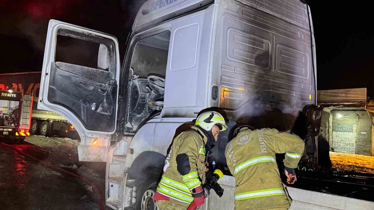 Araçtan alevlerin yükseldiğini gören Tır sürücüsü, aracı yol kenarına çekerek durumu itfaiyeye bildirdi. 112 Acil Çağrı Merkezine yapılan ihbar üzerine bölgeye sevk edilen itfaiye ekipleri tarafından söndürülen yangından sonra TIR'da büyük çapta maddi hasar oluştu.