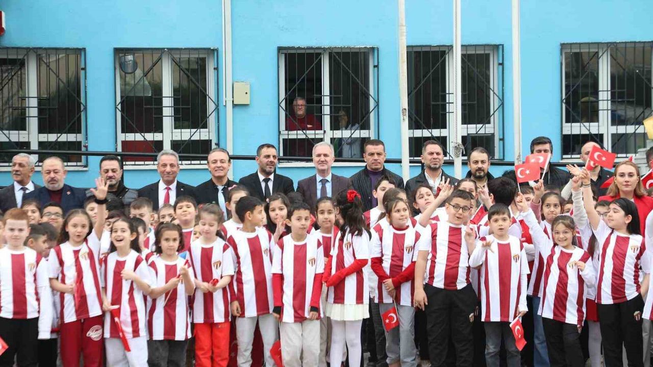 İnegölspor'un başlattığı 'Bir Çocuğun Mutluluğu Dünyaya Bedel' kampanyası kapsamında Şakir Lakşe İlkokulu öğrencilerine formaları teslim edildi.