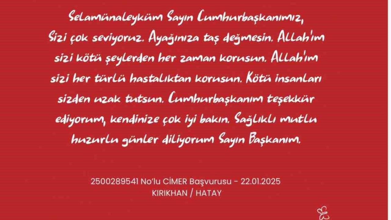 CİMER'e yapılan başvurularda bazı çocuklar 'Doğumuma kim yardım etti öğrenmek istiyorum', 'Ailemde şehit ya da madalya alan biri var mı?' gibi sorular yöneltirken, bazı çocuklar ise somut proje önerilerini paylaştı. Bir çocuk, ambulans ve itfaiye araçlarının trafik ışıklarını otomatik olarak kontrol edebileceği bir sistem önerisinde bulunurken, bir diğeri deniz akıntılarından enerji üretimine yönelik fikirlerini sıraladı. Bir başka çocuk yaz aylarında yaşanan boğulma vakalarına karşı nehir kenarlarında güvenli yüzme alanları oluşturulmasını isterken, okullarda bölgesel sorunlara yönelik proje çalışmaları yapılması önerisi de getirildi. 'Sizin gibi polis olmak istiyorum' diyerek hayalini paylaşan çocukların yanında, tedavi sürecinde kendisine destek olan sağlık çalışanlarına teşekkür mesajını ileten, öğretmenlerine teşekkür mesajları yazan çocukların da olduğu belirtildi.