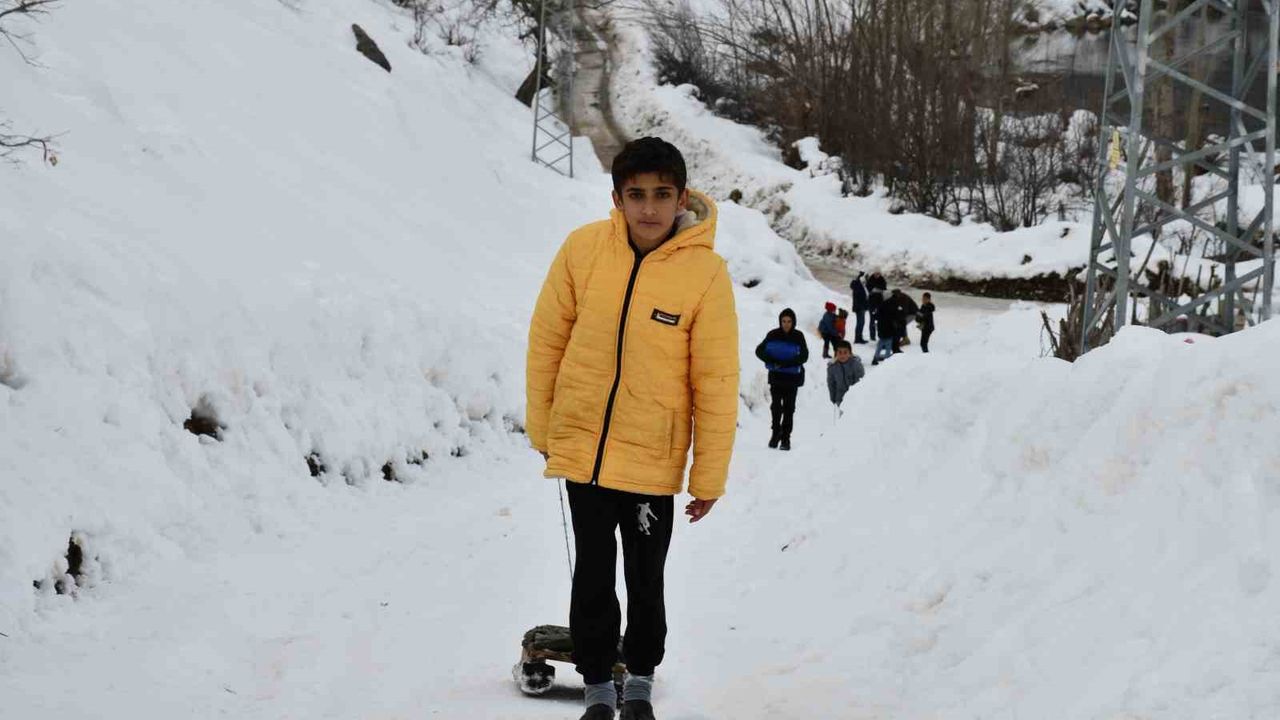 Şırnak'ın Beytüşşebap ilçesinde kar kalınlığı 2 metreye ulaşınca çocuklar kapanan yolları kayak pistine çevirdi. Kilometrelerce uzanan yolları kayak pisti yapıp kızaklarla günlerdir kayan çocuklar, tatilin keyfini çıkarıyor. İlçeye bağlı Aşağıdere köyündeki çocuklar ve yetişkinler güneşli havalarda kayak yapıyor. Eylem Turan günlerdir karda kaydıklarını çok eğlendiklerini söyledi. Turan, ''Çok güzel, kayıp eğleniyoruz'' dedi.