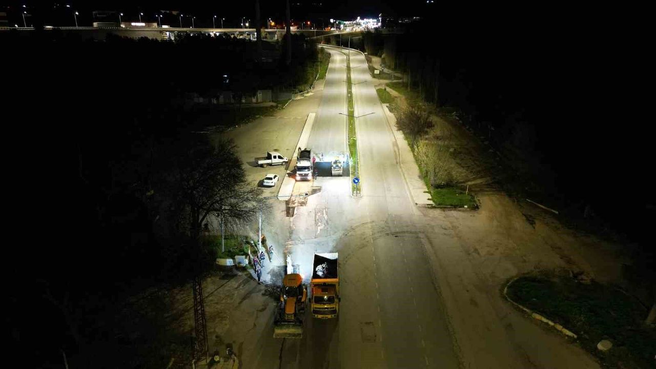 Çorum Belediyesi tarafından gece boyunca yürütülen yol bakım ve onarım çalışmasıyla Gazi Caddesi yenilendi.