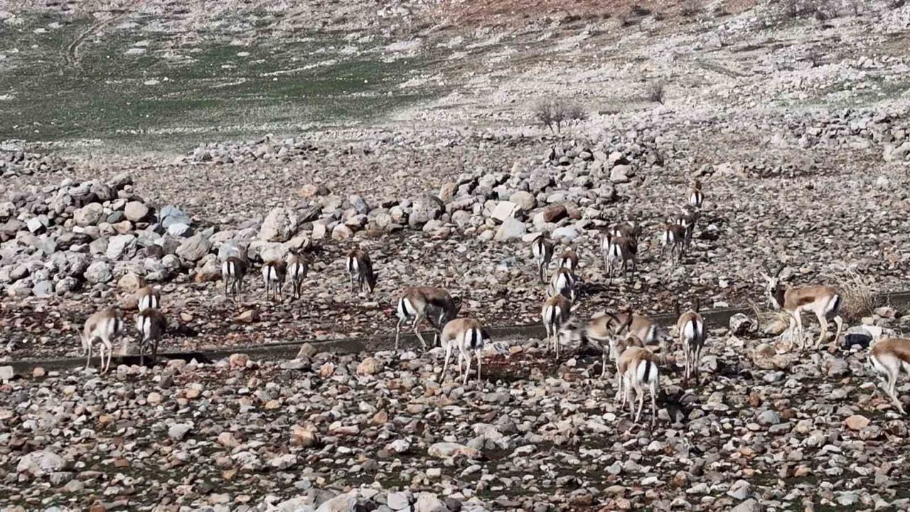 Şırnak'ın Silopi ve Cizre ilçeleri sınırlarında yer alan Cudi Dağı Ceylan Yerleştirme Sahasında ceylan popülasyonu artmaya devam ediyor. Bölgede yapılan son envanter çalışmasında sahadaki ceylan sayısının 165'e ulaştığı belirlenirken, sürü halinde dolaşan ceylanlar dron ile görüntülendi.