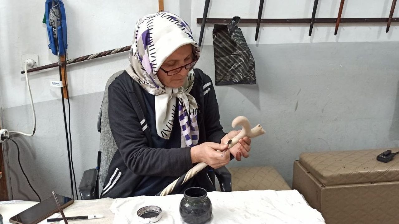 Devrek'te yaşayan Fatma Ayvacı, bir yandan evinin işlerini yürütürken diğer yandan atölyede kızılcık ağacına şekil veriyor. 2003 yılından bu yana eşine yardım ederken mesleği öğrenen ve ustalaşan Ayvacı, kadın elinin değdiği bastonların inceliklerini anlattı.