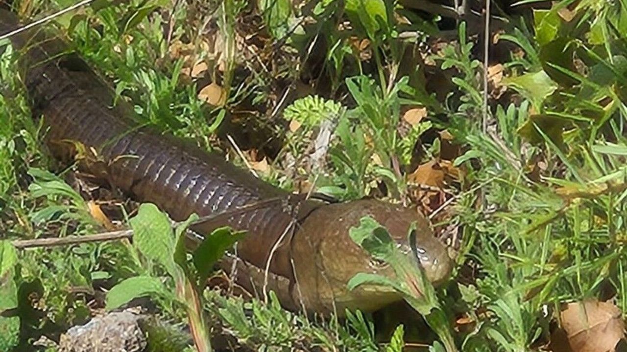 Denizli'nin Bozkurt ilçesine bağlı İnceler Mahallesi'nde bir vatandaş tarafından görüntülenen ilginç bir sürüngen, kısa sürede mahallede merak oluşturdu. İlk bakışta yılanı andıran bu canlı, aslında halk arasında 'demir yılan' olarak bilinen oluklu kertenkele (Pseudopus apodus) çıktı. Bacakları bulunmayan ve bu nedenle sık sık yılanla karıştırılan oluklu kertenkele, uzmanlara göre tamamen zararsız bir tür. Zehirli olmadığı gibi insanlara karşı herhangi bir tehdit oluşturmuyor. Doğa yürüyüşüne çıkan mahalle sakini tarafından Beyköyü Çeşmesi yakınlarındaki dere yatağında da görülen demir ilan bugün de Göktepe civarında görüldü. Uzmanlar, oluklu kertenkelenin ekosistem için önemli bir role sahip olduğunu belirtiyor. Özellikle böcek ve küçük zararlılarla beslenen bu tür, doğal dengeyi korumada fayda sağlıyor.