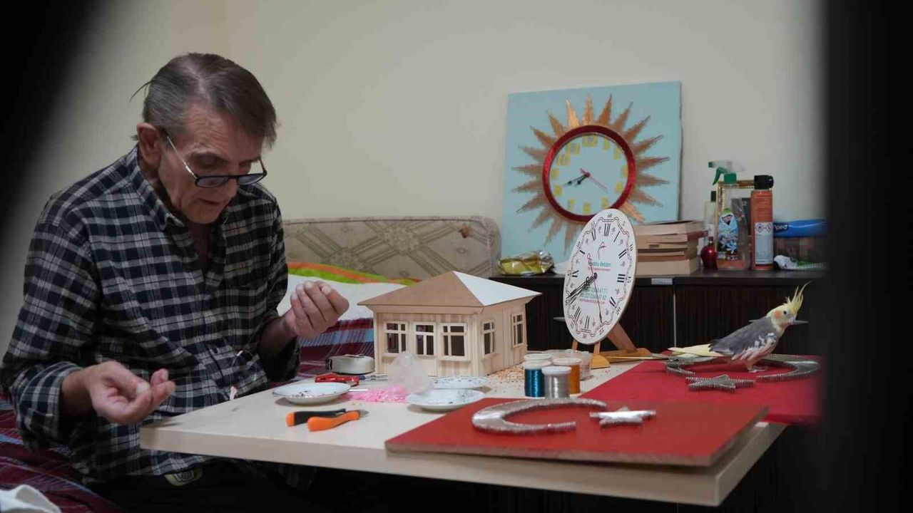 Bayburt Memnune Evsen Yaşlı Bakım ve Rehabilitasyon Merkezi sakinlerinden 74 yaşındaki Bülent Alemdar, pandemi döneminde tanıştığı el sanatlarıyla takı tasarımı, filografi ve maket alanında çalışmalar yapıyor. El emeği ürünler hazırlayan Alemdar, 6 yıldır üretmeyi sürdürüyor.