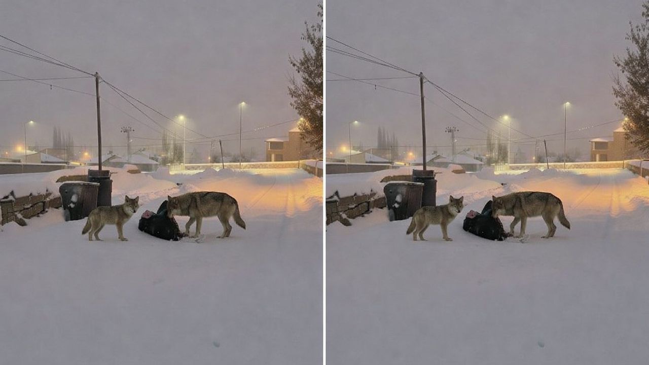 Kar kalınlığının artması ve doğada yiyecek bulmanın zorlaşmasıyla birlikte yerleşim yerlerine inen kurtlar, bir sokak üzerinde yiyecek ararken cep telefonu kamerasıyla kaydedildi. Görüntülerde kurtların karla kaplı yolda uzun süre dolaştığı ve çevreyi kontrol ettiği görüldü.