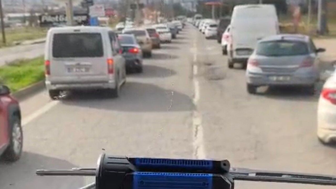 Diyarbakır'da sürücüler, bir ihbara giden itfaiye ekiplerine 'fermuar' sistemiyle yol verdi.