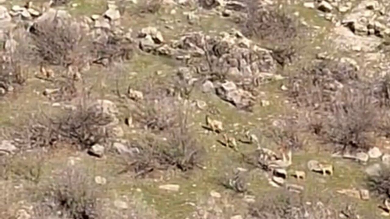 Doğal güzellikleri ile ünlü Diyarbakır'ın Çermik ilçesi, yaban hayvanlarının mekanı olmaya devam ediyor. İlçede nesli tükenme tehlikesi altında bulunan dağ keçileri sürü halinde yiyecek ararken görüntülendi.