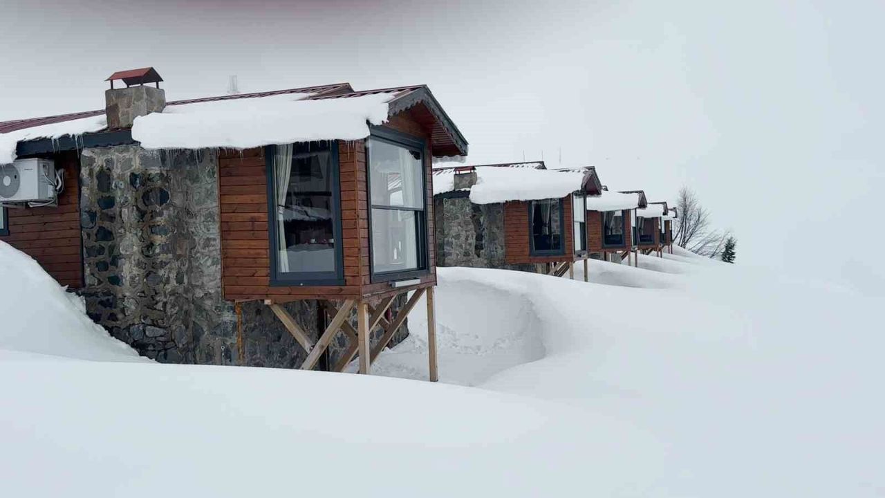 Rize'de nisan ayında yağan karla beyaza bürünen Handüzü Yaylası kendisine hayran bırakıyor.